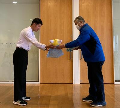 学年委員長から、お世話になった呉市のボランティアガイドの皆様に、感謝のしるしにシライトタイガーをお渡ししました。